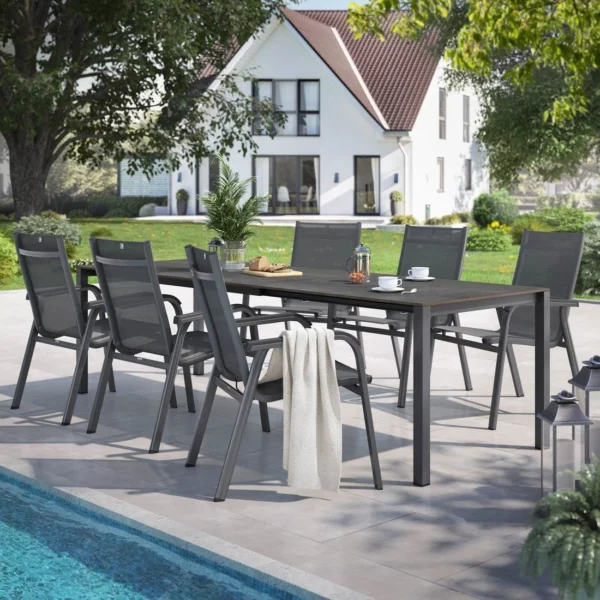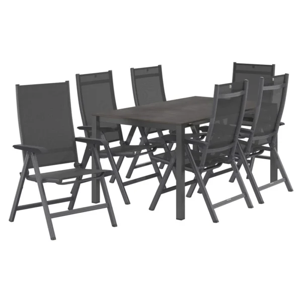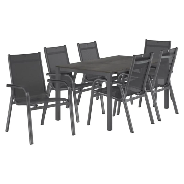 Kettler Basic Plus Gartenmöbel-Set 7-tlg+Tisch 160/267×91 Anthrazit/Zement