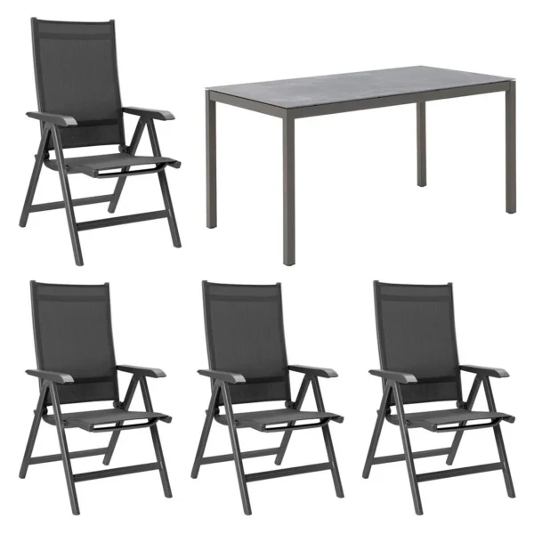 Kettler Basic Plus Gartenmöbelset 5-tlg. + Tisch 160×100 Cm Anthrazit/Concrete