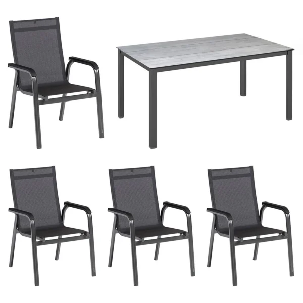 Kettler Basic+ Premium Gartenmöbelset 5-tlg.+Tisch 160×90 Cm Anthrazit/Lakritz