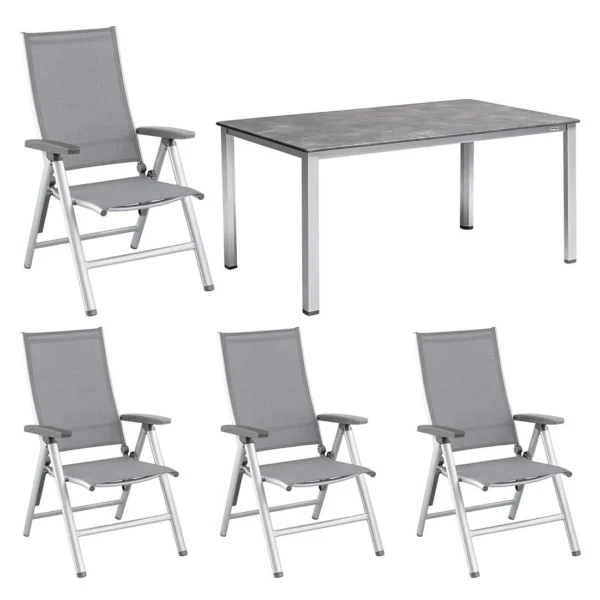 Kettler Cirrus Gartenmöbel-Set 5-tlg. Mit Tisch 160x90cm Silber/Anthrazit-Grau