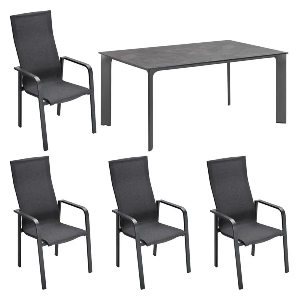 Kettler Diamond Gartenmöbelset 5-tlg. Mit Tisch 160×95 Cm Anthrazit/Coal