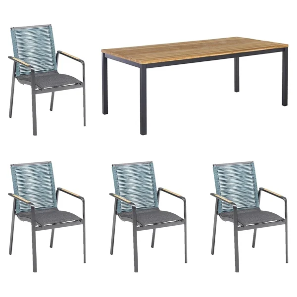 Kettler Diamond Gartenmöbelset 5-tlg. Mit Tisch 180x90cm Anthrazit/Charcoal/Petrol
