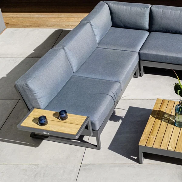 Kettler Ocean Skid Modular Eck-/Endmodul Aluminium/Olefin Mit Teak-Leiste Anthrazit/Hellgrau Meliert