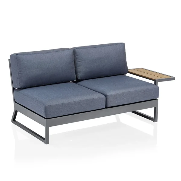 Kettler Ocean Skid Modular Endteil Aluminium/Olefin Mit Teak-Leiste Anthrazit/Hellgrau Meliert