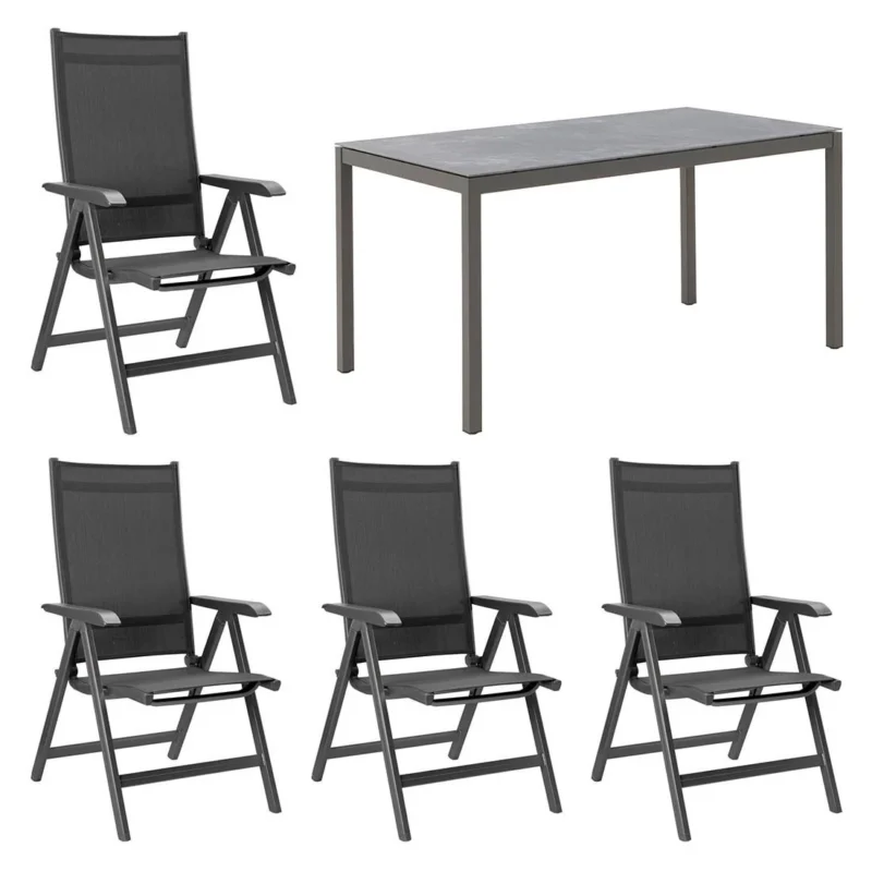 Kettler Basic Plus Gartenmöbelset 5-tlg. + Tisch 140×80 Cm Anthrazit/Concrete