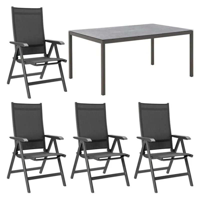 Kettler Basic Plus Gartenmöbelset 5-tlg. + Tisch 160×100 Cm Anthrazit/Concrete