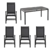 Zum Lieferumfang des Sets gehört auch ein praktischer Tisch. Dessen stabile Tischplatte aus praktischem HPL-Kunststoffverbund ist besonders für Gartenparties unter freiem Himmel und das Essen draußen außerordentlich gut geeignet. Als klassische Design-Komponente fungiert das geradlinige Vierfußgestell. Die rechteckige Form ermöglicht es Ihnen, den Tisch in Ecken und an Häuserwänden platzsparend einzusetzen.