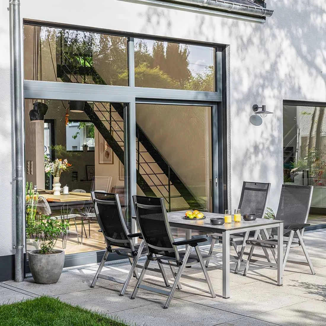 Nur wenig Platz, um das Gartenmöbel-Set im Winter einzulagern? Kein Problem, denn die Gartenstühle sind klappbar und somit kompakt zu verstauen.