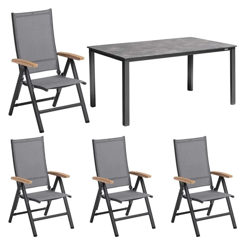 Kettler Cirrus Gartenmöbel-Set 5-tlg. Mit Tisch 160x90cm Anthrazit/Anthrazit-Grau