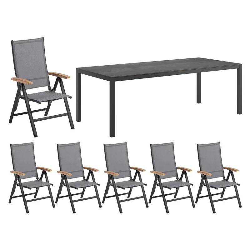 Kettler Cirrus Gartenmöbel-Set 7-tlg. Mit Tisch 220x100cm Anthrazit/Anthrazit-Grau