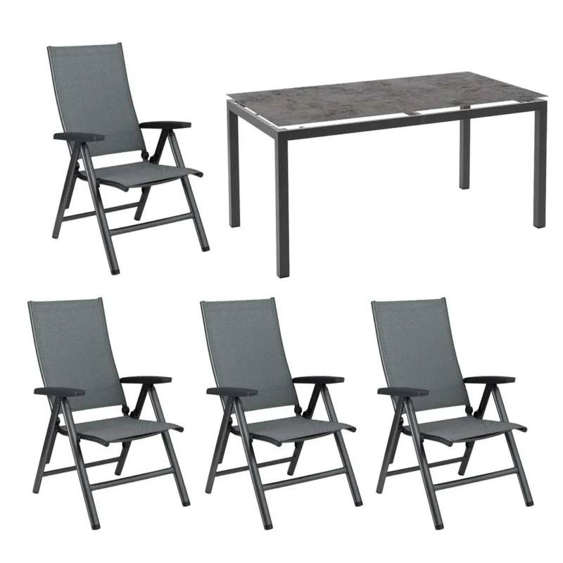 Kettler Cirrus Gartenmöbelset 5-tlg. Mit Tisch 160x90cm Anthrazit/Anthrazit-Grau