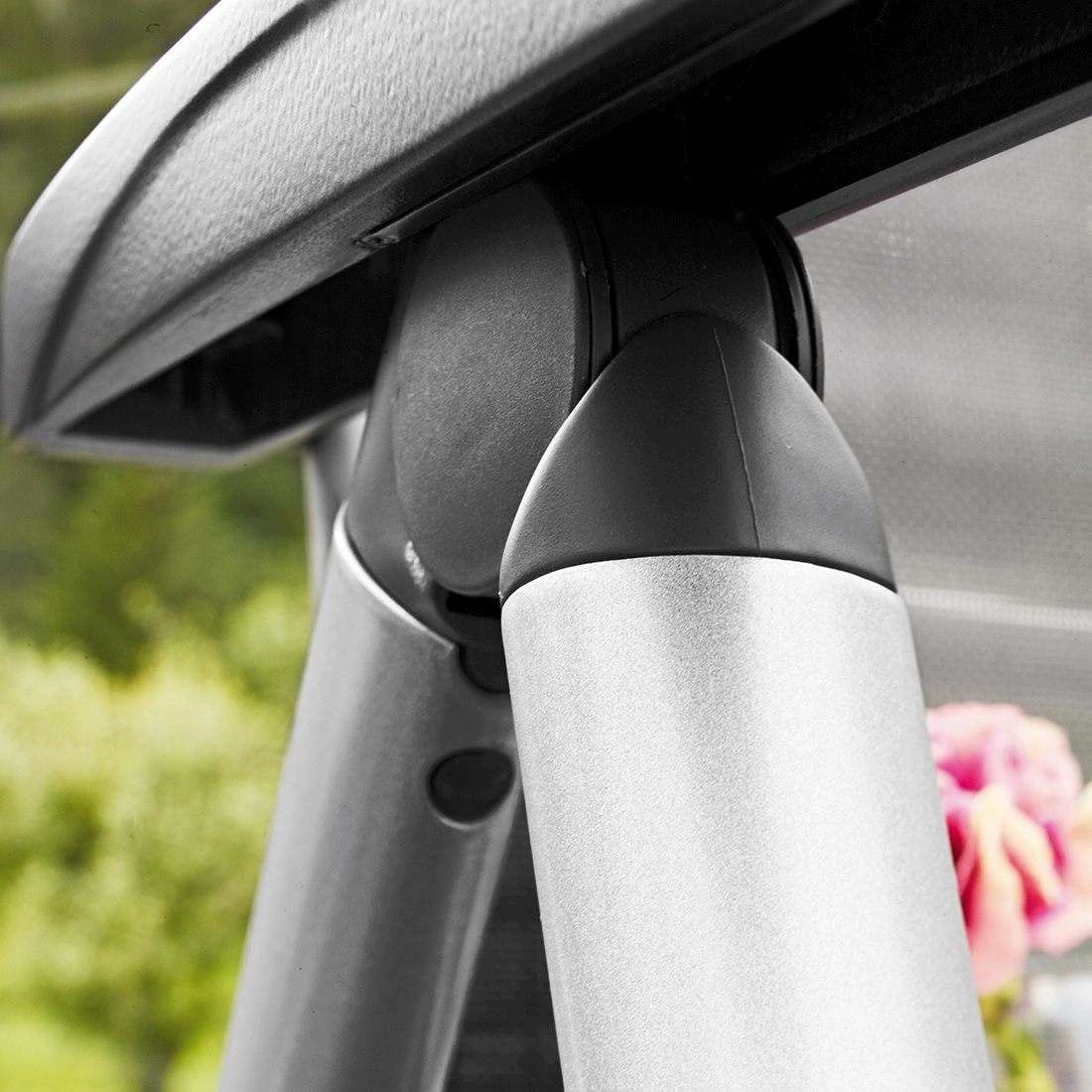 Für die Herstellung des Gestells wird hochwertiges und wetterfestes Aluminium verwendet. Farblich ist dieses in Silber gehalten. Die Sitzfläche wird mit Textilene bespannt. Dieses Material ist reiß- und wetterfest und zeichnet sich durch eine hohe Beständigkeit gegenüber Hitze und Frost aus. Darüber hinaus ist Textilene leicht zu säubern. Die Sitzfläche hat eine elegante Farbgebung in Anthrazitgrau.