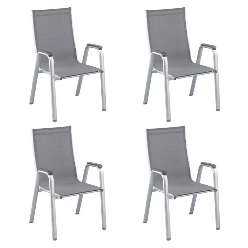 Kettler Cirrus Stapelsessel-Set Aluminium/Textilene Silber/Anthrazit-Grau