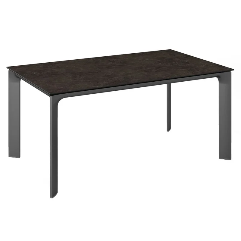 Aufgrund seines Gestells aus Aluminium zählt der Gartentisch Diamond zu den modernen Tischmodellen, die sich im Garten problemlos aufstellen und bewegen lassen. Das klassische Vierfuß-Gestell garantiert Ihnen maximale Beinfreiheit. Mit Keramik beschichtetes Glas ist das Material, das für die Tischplatte gewählt wird. Das robuste Material ist nicht so schwergewichtig wie Naturstein, sorgt allerdings ebenso für windsicheren Halt auf der Terrasse und im Garten. Farblich ist die Tischplatte in einem schönen Anthrazit gehalten. Mit der rechteckigen Form lässt sich der Gartentisch platzsparend in Ecken oder an Häuserwänden aufstellen.