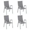 Das Gestell besteht aus pflegeleichtem und wetterfestem Aluminium. Für eine attraktive Optik ist das Gestell im Farbton Silber gehalten. Ein weiterer Pluspunkt des Stapelsessels ist die Bespannung mit Textilene in der Farbe Hellgrau. Dieser Bezugsstoff überzeugt durch eine hohe Robustheit gegenüber Hitze und Frost und ist leicht zu reinigen. Die Sitzfläche ist in ansprechendem Hellgrau gehalten.