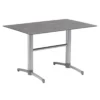 Als Gestellmaterial dient qualitativ hochwertiges Aluminium. Klassisch aus vier Tischbeinen besteht das Gestell des Tisches. Mit der rechteckigen Form lässt sich das Tischgestell platzsparend in Ecken oder an Häuserwänden aufstellen.