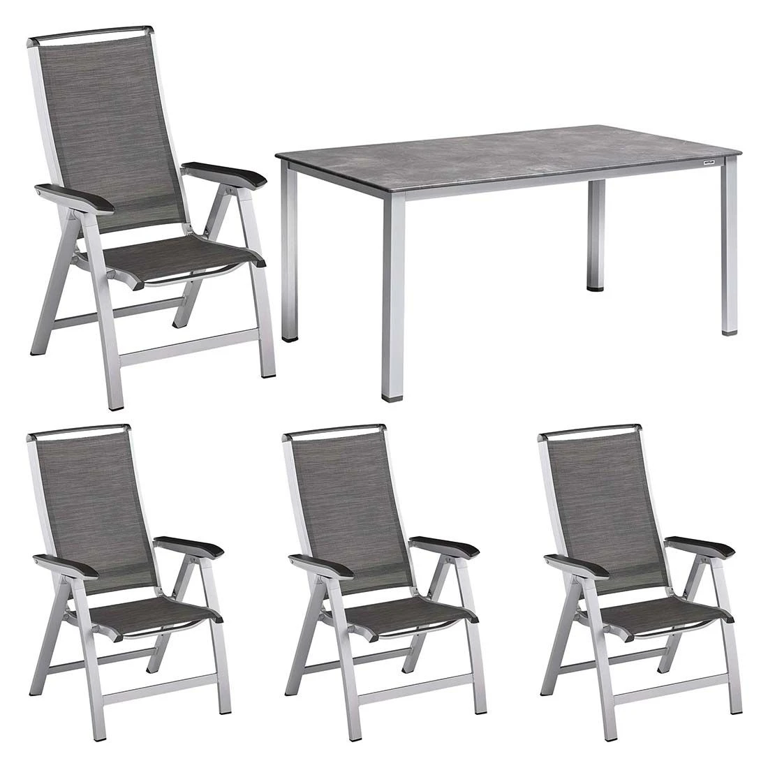 Kettler Forma II Gartenmöbel-Set 5-tlg. Mit Tisch 160x90cm Silber/Graphit