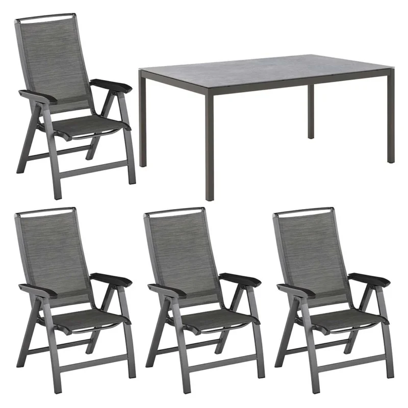Kettler Forma II Gartenmöbelset 5-tlg. Mit Tisch 160×100 Cm Anthrazit/Concrete