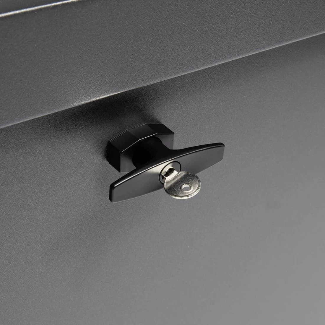 Aus Stabilitätsgründen wird der Korpus aus robustem Stahl gefertigt. Der Korpus ist farblich in geschmackvollem Anthrazit gestaltet. Gerade wenn es darum geht, die Gartenbox optimal zu integrieren, ist diese Farbe ideal dafür.