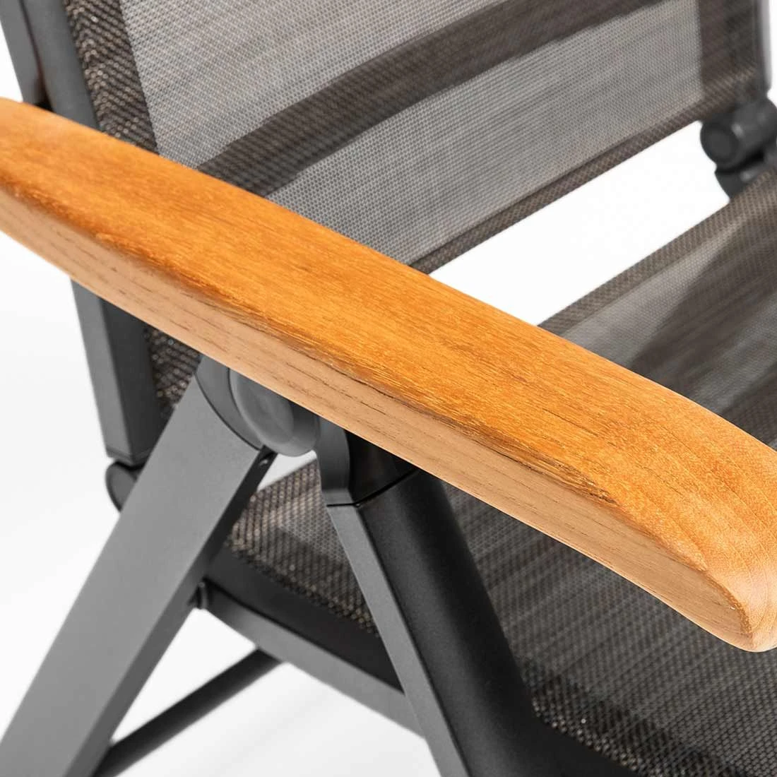 Kettler Memphis Klappsessel Aluminium/Textilene Mit Teak-Armlehnen Anthrazit/Bronze