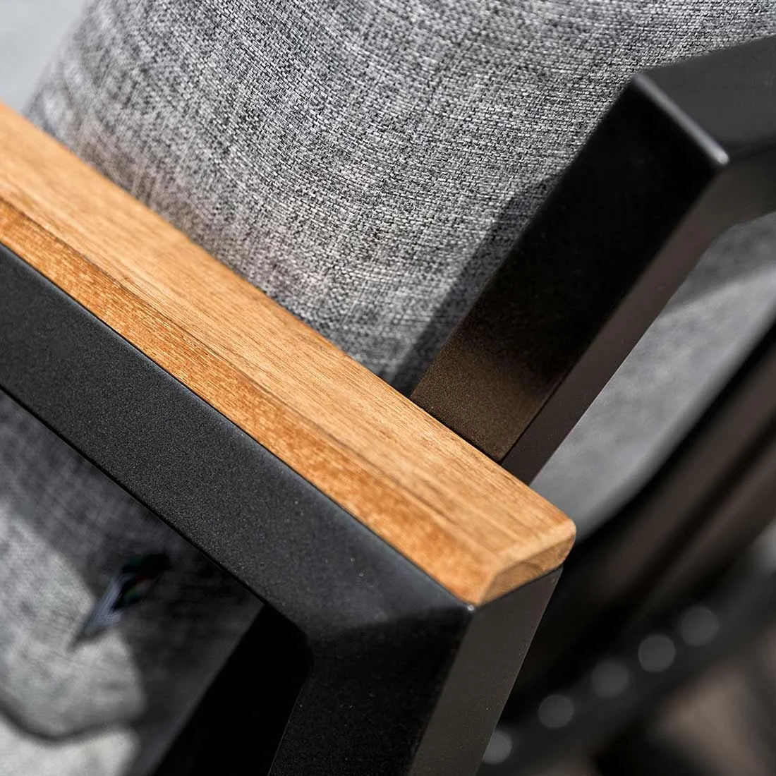 Für das Gestell und die Tischplatte kommt Aluminium zum Einsatz. Damit die Dininglounge optisch ansprechend ist, sind das Gestell und die Tischplatte im Farbton Anthrazit gehalten. Für die Sitz- bzw. Rückenfläche wird Olefin verwendet. Der Marken-Outdoorstoff überzeugt mit einer hohen Witterungsbeständigkeit. Denn sowohl Sonne als auch Regen können dem robusten Outdoor-Stoff kaum etwas anhaben.