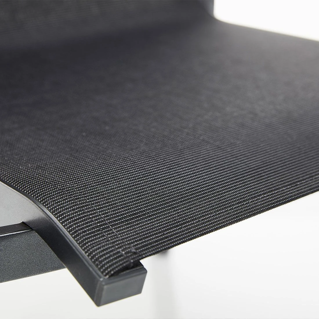 Die robusten Metallgestelle aus Aluminium sind pflegeleicht und garantieren gleichzeitig eine hohe Stabilität. Darüber hinaus gewährleistet dieses leichte Material, dass Sie die Möbel bequem transportieren können. Optisch ansprechend ist die Farbgebung der Gestelle in Anthrazit. Ein weiteres Highlight ist die Bespannung der Sitzflächen mit Textilene. Dieses Material zeichnet sich durch eine hohe Robustheit gegenüber Hitze und Frost aus und ist leicht zu reinigen. Die Farbgebung der Sitzfläche ist Charcoal. Zum Lieferumfang des Sets gehört auch ein passender Tisch. Als Material für die Tischplatte wird das hochwertige Hartholz Teak gewählt. Die Maserung dieses Holzes und der heitere Farbton integrieren sich hervorragend in das Gesamtbild eines jeden Gartens und bescheren eine einzigartige natürliche Atmosphäre. Passend zum Gesamtbild des Gartenmöbel-Sets begeistert die Tischplatte mit ihrer Farbgebung in Natur. Als klassische Design-Komponente fungiert das geradlinige Vierfußgestell. Die rechteckige Form ermöglicht es Ihnen, den Tisch in Ecken und an Häuserwänden platzsparend einzusetzen.