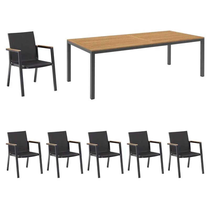 Kettler Rasmus Gartenmöbelset 7-tlg. Mit Tisch 220×100 Cm Anthrazit/Charcoal