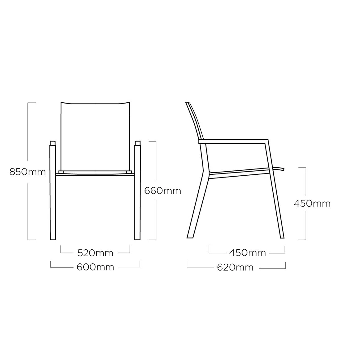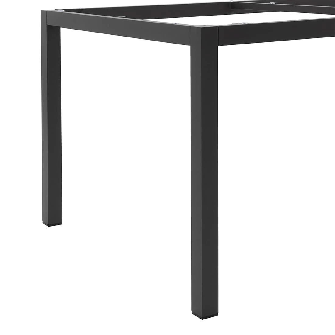 Das Gestell ist aus Aluminium gefertigt. Dadurch lassen sich die Möbel leicht von einem Standort zum nächsten transportieren und sind dennoch sehr stabil. Optisch ansprechend ist die Farbgebung der Gestelle in Anthrazit. Ein weiterer Pluspunkt ist die Bespannung der Sitzflächen mit Textilene. Dieses Material zeichnet sich durch eine hohe Robustheit gegenüber Hitze und Frost aus und ist leicht zu reinigen. Die Farbgebung der Sitzfläche ist Charcoal. Im Set enthalten ist auch ein passender Tisch. Die Platte des Tisches ist aus natürlichem Teak hergestellt. Mit ihrem hohen natürlichen Anteil an Öl, ist sie damit wunderbar vor Witterungseinflüssen geschützt. Farblich überzeugt die Tischplatte in Natur. Als klassische Design-Komponente fungiert das geradlinige Vierfußgestell. Mit der rechteckigen Form lässt sich der Tisch platzsparend in Ecken oder an Häuserwänden aufstellen.