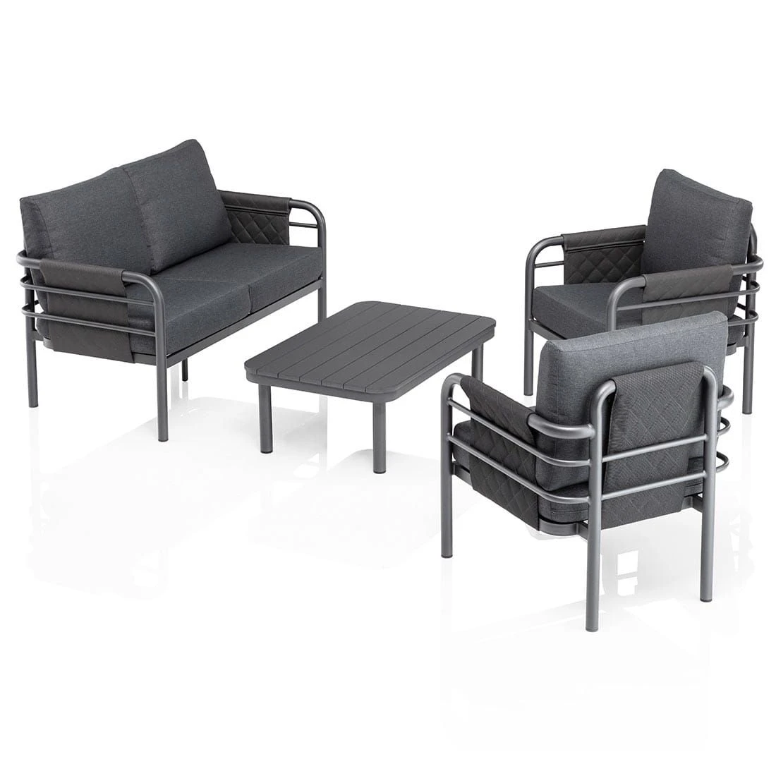 Für die Herstellung des Gestells wird hochwertiges und wetterfestes Aluminium verwendet. Für eine attraktive Optik ist das Gestell im Farbton Anthrazit gehalten. Die Sitzfläche hat eine schöne Farbgebung in Charcoal. Als hochwertiges Material für den Bezug kommt ein Polyester-Stoff zum Einsatz. Er ist sehr strapazierfähig und bietet somit die idealen Voraussetzungen für den Einsatz im Freien.
