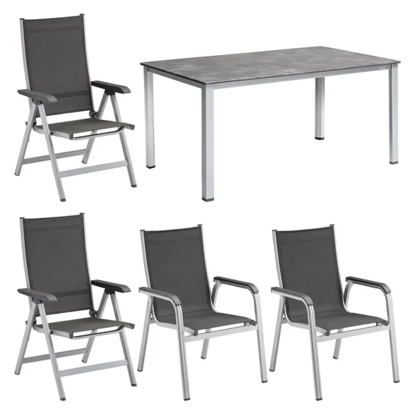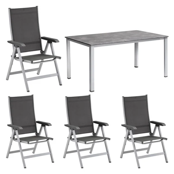 Kettler Basic Plus Gartenmöbelset 5-tlg.+Tisch 160×90 Cm Silber/Anthrazit